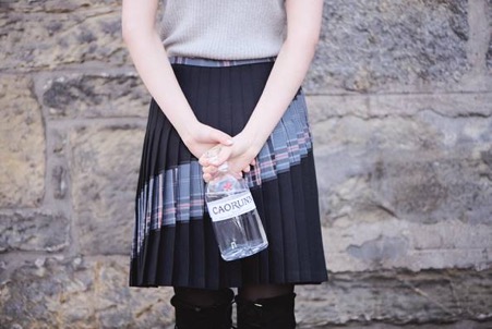 While the traditional kilt dates to the 1720s, Mackenzie’s extremely eye-catching, contemporary stance, sees her contrast multiple fabrics and colours, leading to unexpected style features. Chiming with her ethos, Mackenzie describes Caorunn as a particularly current brand underpinned by a strong sense of Scottish craft.
